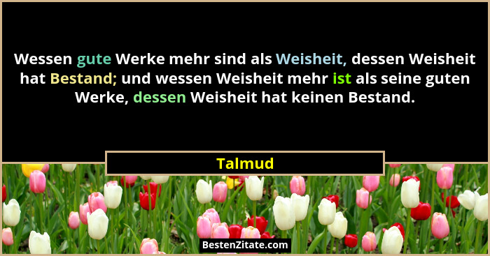 Wessen gute Werke mehr sind als Weisheit, dessen Weisheit hat Bestand; und wessen Weisheit mehr ist als seine guten Werke, dessen Weisheit hat keinen Bestand.