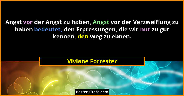 Angst vor der Angst zu haben, Angst vor der Verzweiflung zu haben bedeutet, den Erpressungen, die wir nur zu gut kennen, den Weg zu ebnen.