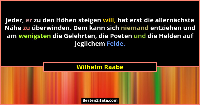 Jeder, er zu den Höhen steigen will, hat erst die allernächste Nähe zu überwinden. Dem kann sich niemand entziehen und am wenigsten die Gelehrten, die Poeten und die Helden auf jeglichem Felde.